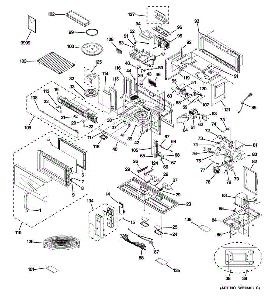 Hardware assembly kit for microwaves. Replaces worn, damaged, or missing mounting hardware for panels, doors, and trim. Restores secure fit and function.