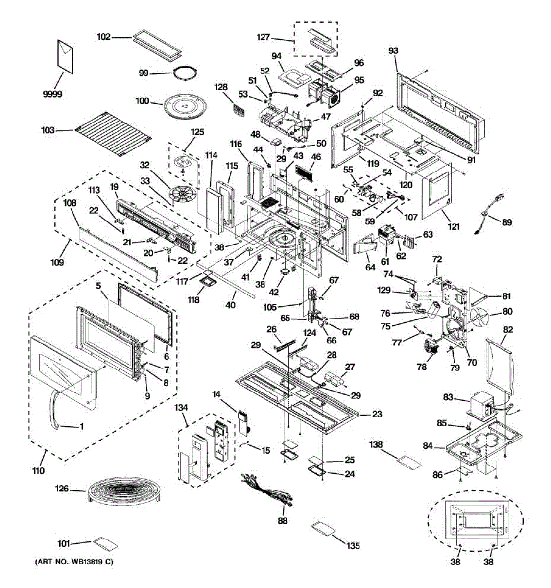 Hardware assembly kit for microwaves. Replaces worn, damaged, or missing mounting hardware for panels, doors, and trim. Restores secure fit and function.