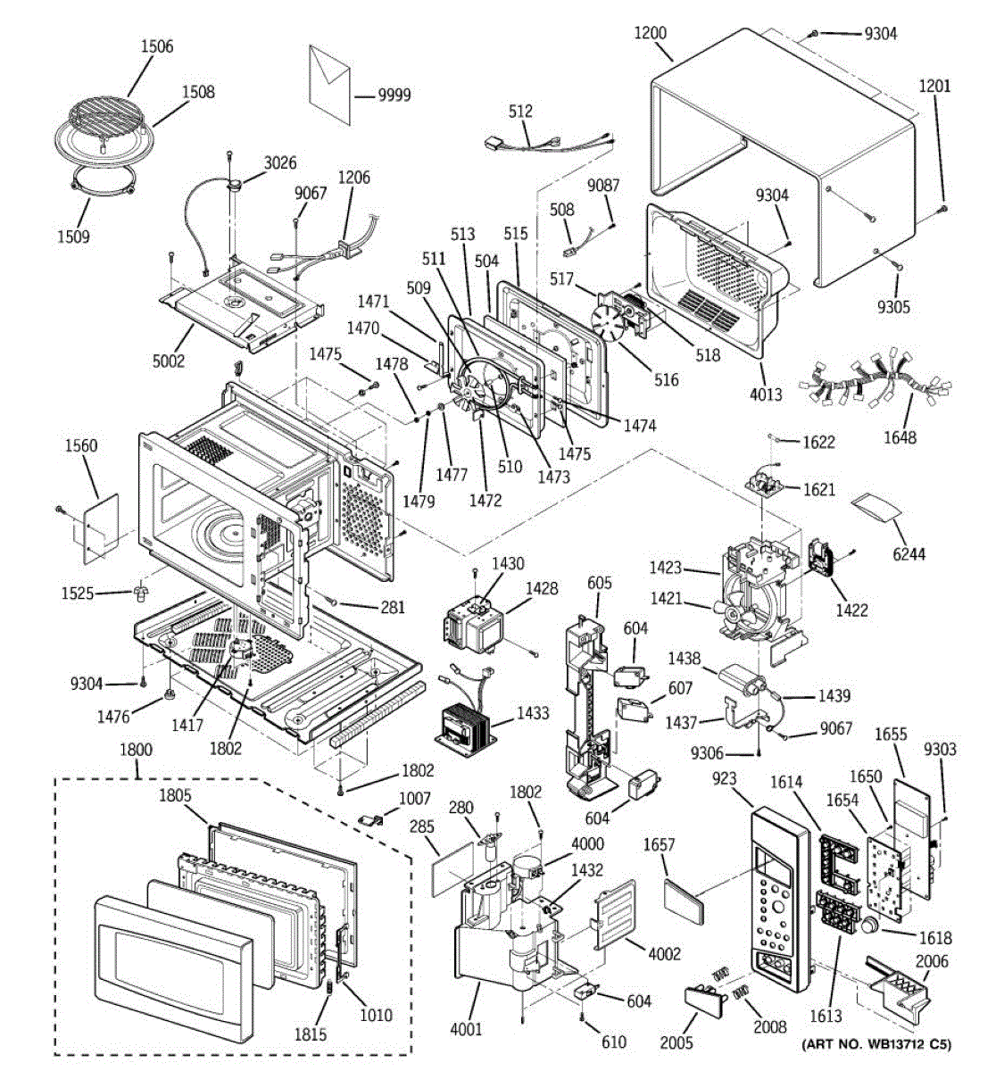Wire harness for microwave ovens. Connects internal electrical components. Replace if wires are frayed, connectors are damaged, or harness is burned.