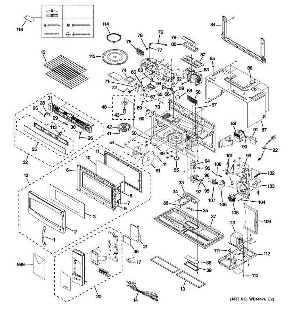 Fixes loud grinding or coffee grinder noise from microwave. Simple DIY repair with 2 screws and wire connectors. Located on top, typically takes under 30 minutes.