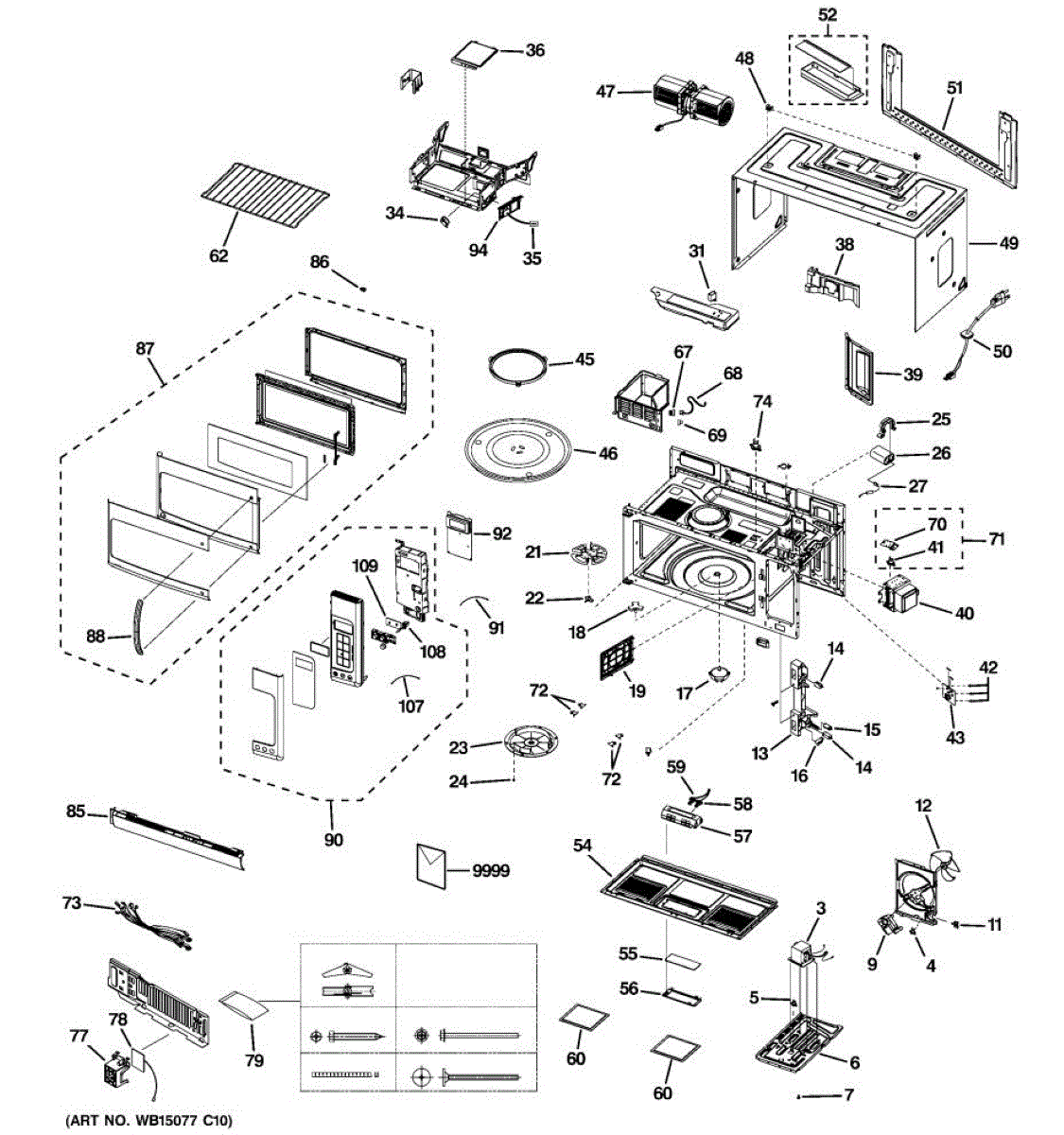Secures microwave components and mounting brackets. Replace this hardware assembly if screws are stripped, bolts are missing, or fasteners are damaged.