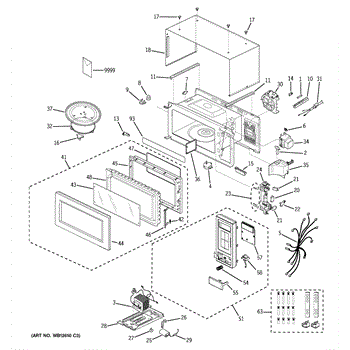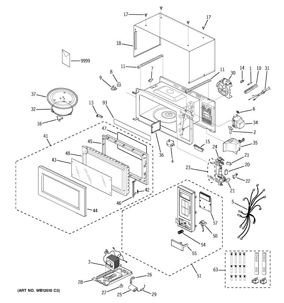 Complete microwave door assembly that installs on the front cabinet. Replace if your door is cracked, damaged, or the hinges are broken or worn out.