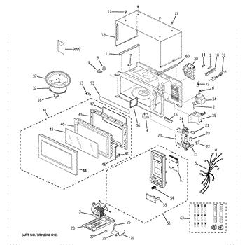 Complete microwave door assembly that installs on the front cabinet. Replace if your door is cracked, damaged, or the hinges are broken or worn out.