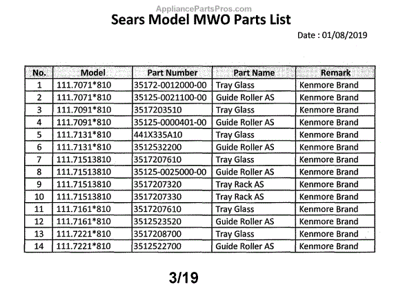 Parts for Kenmore 111.70713810 (11170713810, 111 70713810): Microwave Parts