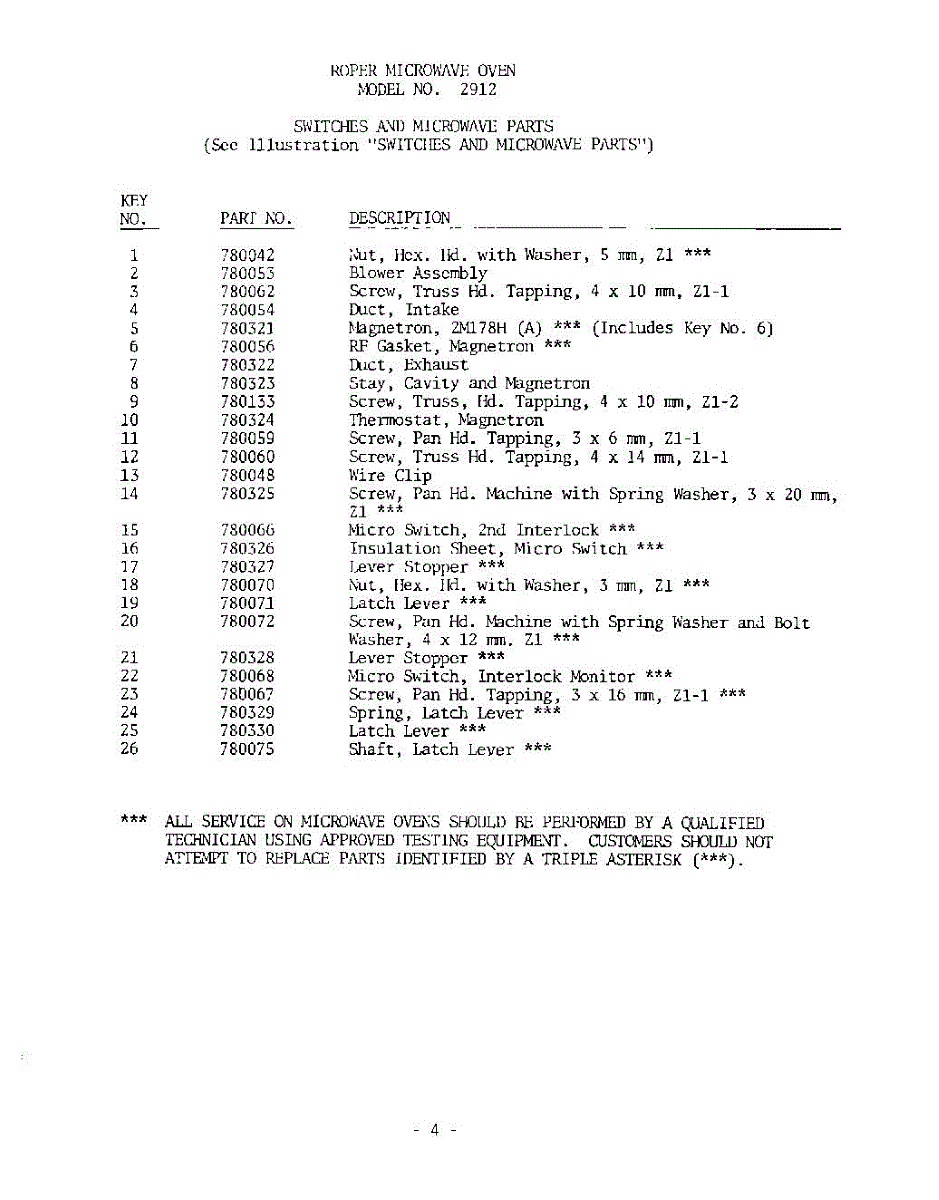 Parts for Whirlpool 2912000: 05 - Microwave Parts
