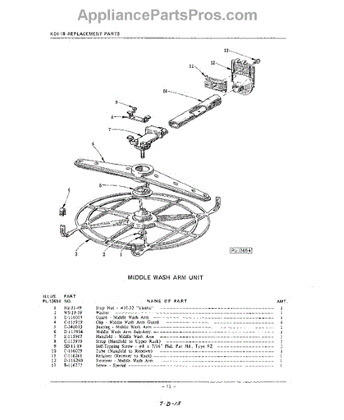 Parts for Kitchenaid KDI58: 13 - Middle Wash Arm Parts