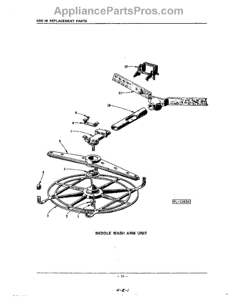 Parts for Kitchenaid KDS38: 15 - Middle Wash Arm Parts