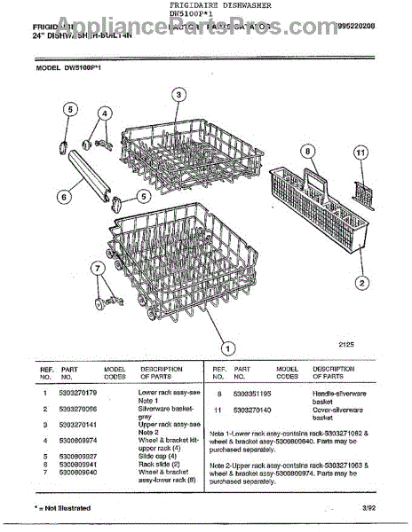 Parts for Frigidaire DW5100P*1: Misc. / Literature / Optional Parts