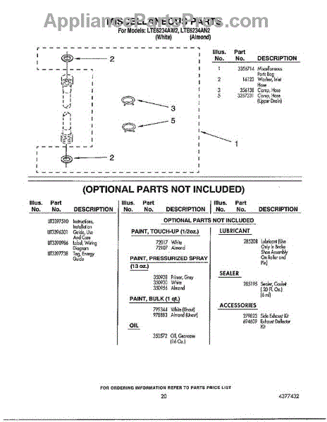 Parts for Whirlpool LTE6243AW2: Misc. / Optional Parts