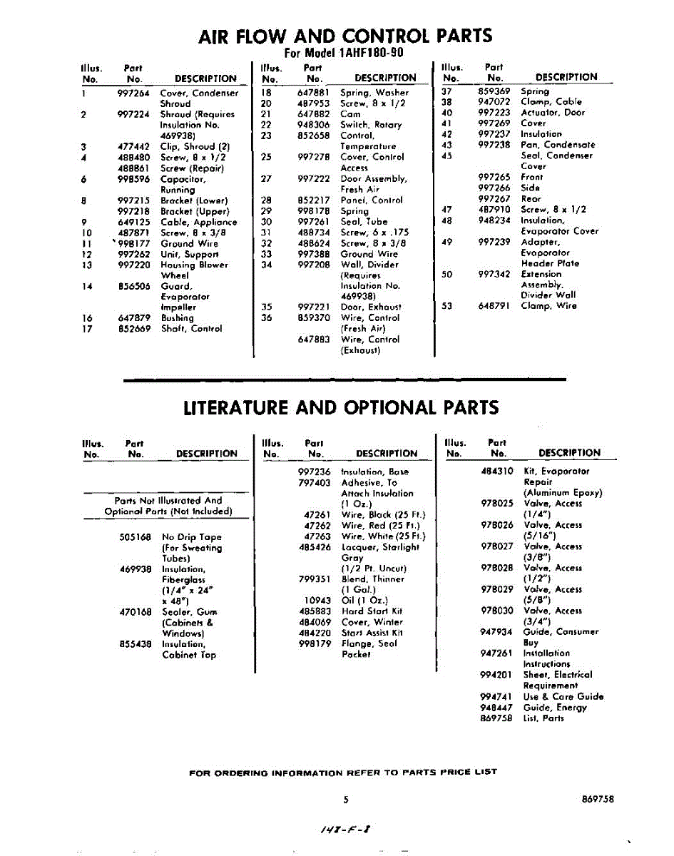 Parts for Amana CRC12T2 / P1304439M: 01 - Miscellaeous Information Parts