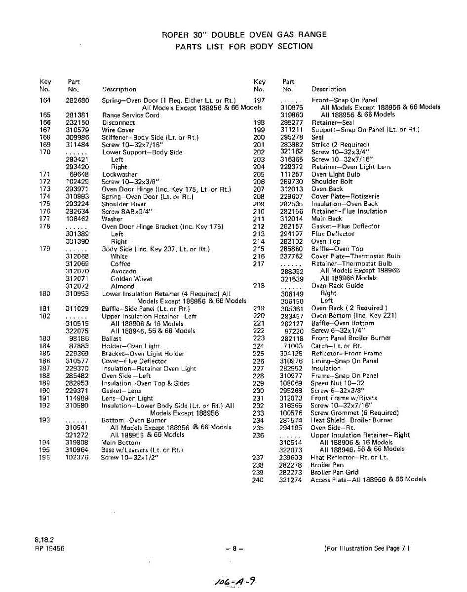 Parts for Amana SNAC8LW / P1301001M: 01 - Miscellaeous Information Parts