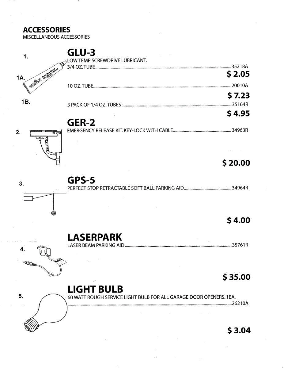 Parts for Genie 2020L: Miscellaneous Accessories Parts