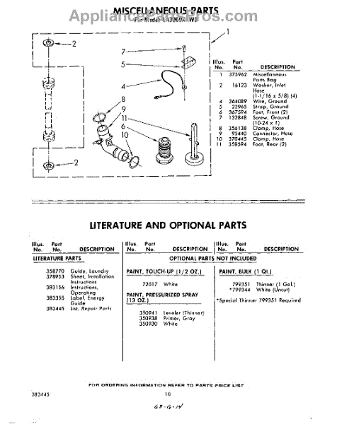 Parts for Whirlpool LA3000XKW0: 10 - Miscellaneous , Literature And Optional Parts