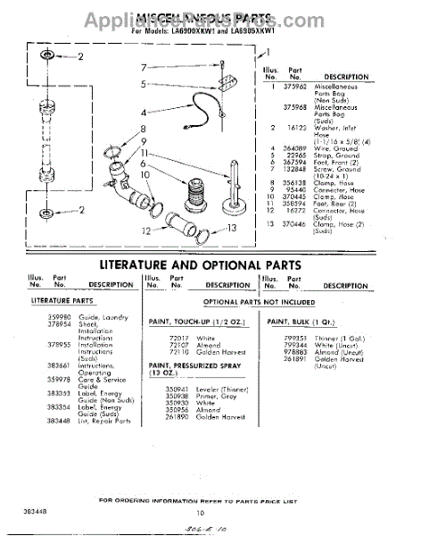 Parts for Whirlpool LA6905XKW1: 10 - Miscellaneous , Literature And Optional Parts