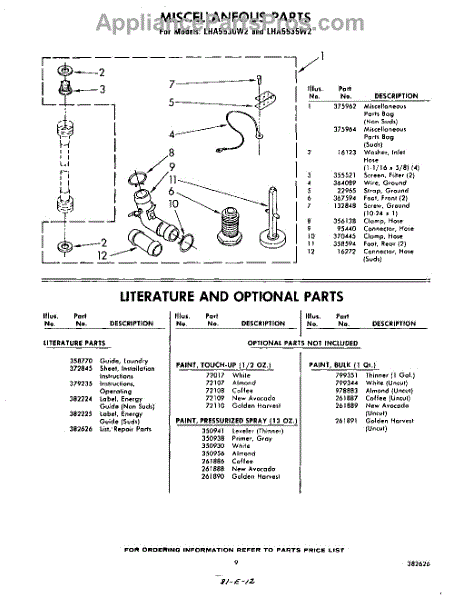 Parts for Whirlpool LHA5530W2: 09 - Miscellaneous , Literature And Optional Parts