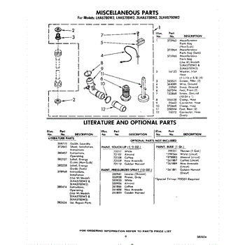 Parts for Whirlpool LHA5705W2: 09 - Miscellaneous , Literature And Optional Parts
