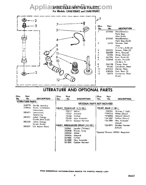 Parts for Whirlpool LHA6705W2: 09 - Miscellaneous , Literature And Optional Parts