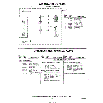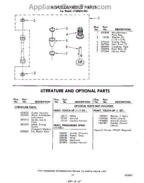 Parts for Whirlpool LT5000XLW0: 19 - Miscellaneous , Literature And Optional Parts