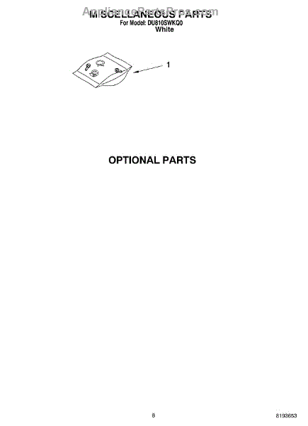 Parts for Whirlpool DU810SWKQ0: 07 - Miscellaneous, Optional Parts
