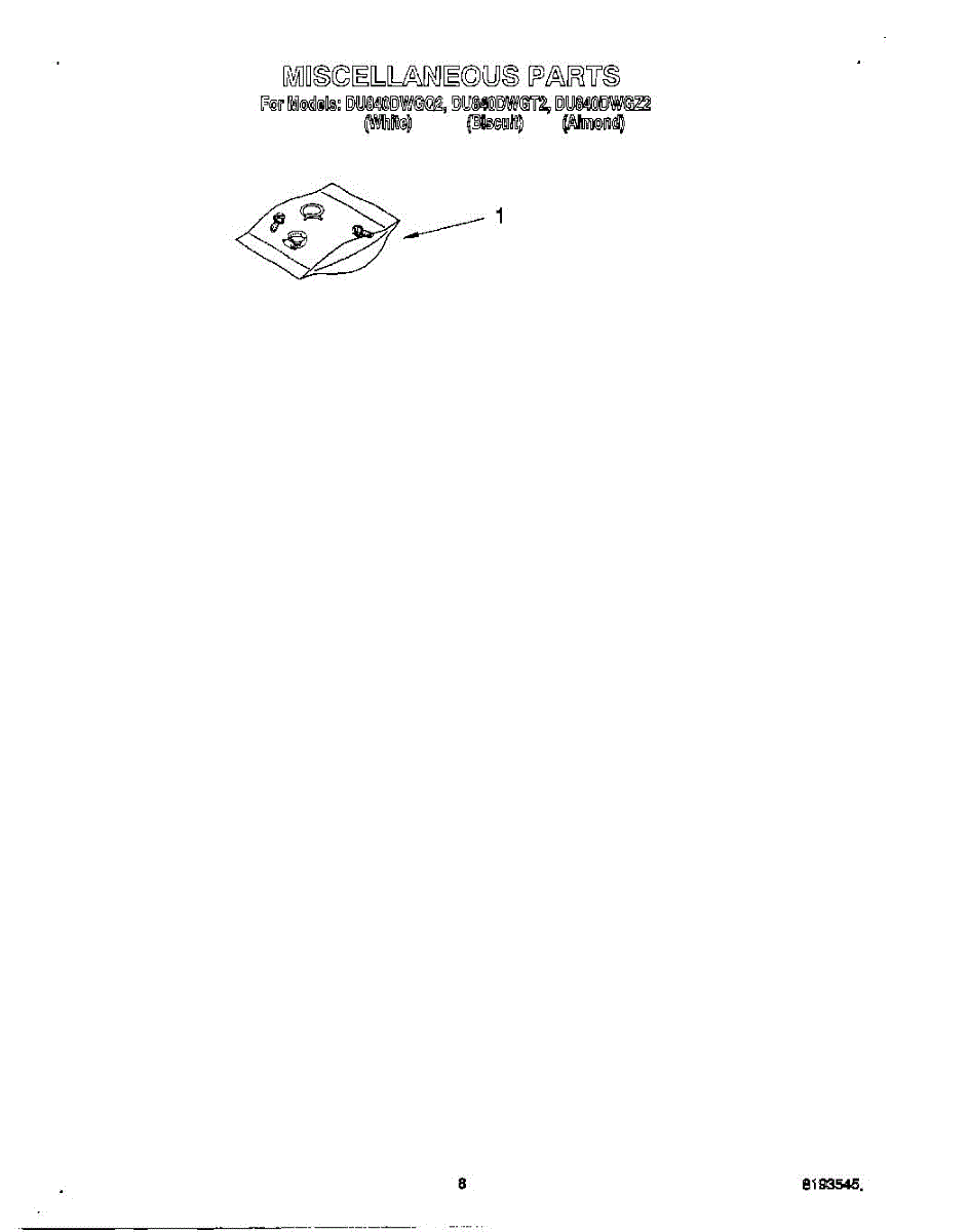 Parts for Whirlpool DU840DWGZ2: 07 - Miscellaneous, Optional Parts