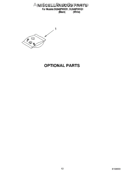 Parts for Whirlpool DU948PWKB1: 07 - Miscellaneous, Optional Parts