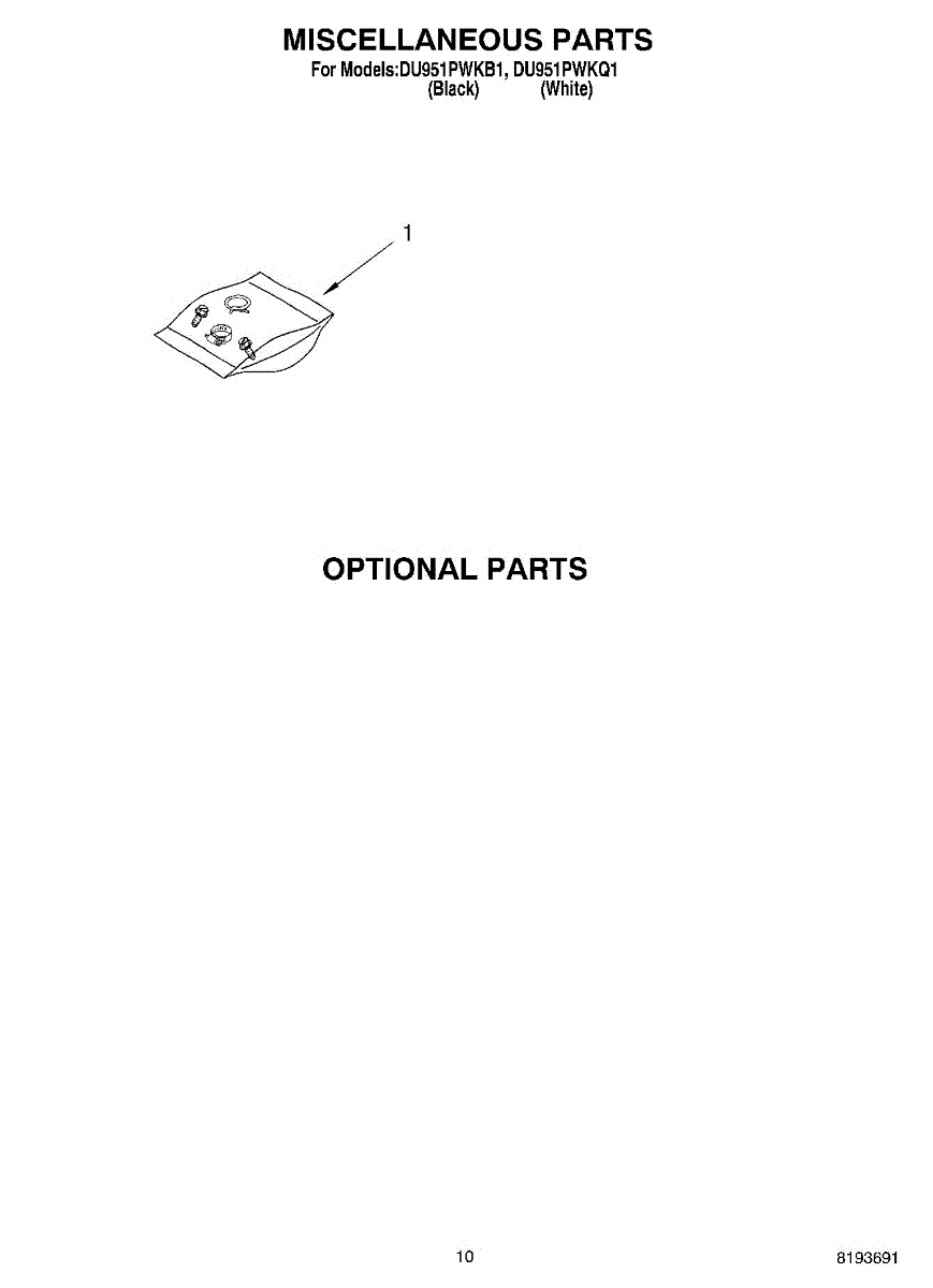 Parts for Whirlpool DU951PWKB1: 07 - Miscellaneous, Optional Parts