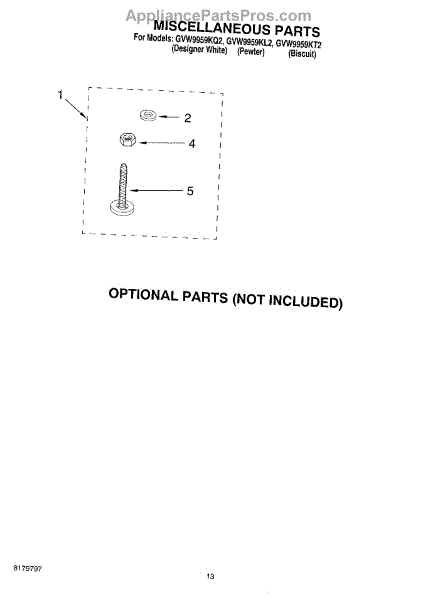 Parts for Whirlpool GVW9959KQ2: 08 - Miscellaneous, Optional Parts