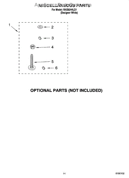 Parts for Roper RAS8244LQ1: 10 - Miscellaneous Parts Optional Parts (Not Included) Parts