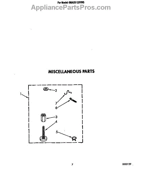 Parts for Whirlpool 6MAX5133VW0: Miscellaneous Parts