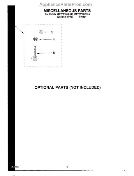 Parts for Whirlpool 7MGVW9959KL3: 08 - Miscellaneous Parts Optional Parts (Not Included) Parts