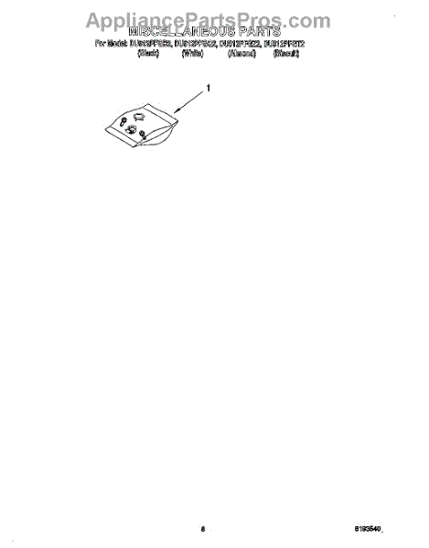 Parts for Whirlpool DU912PFGZ2: 06 - Miscellaneous, Optional Parts