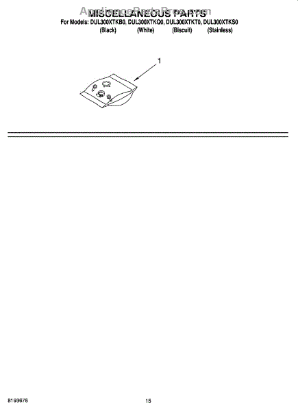 Parts for Whirlpool DUL300XTKB0: 12 - Miscellaneous Parts Optional Parts (Not Included) Parts