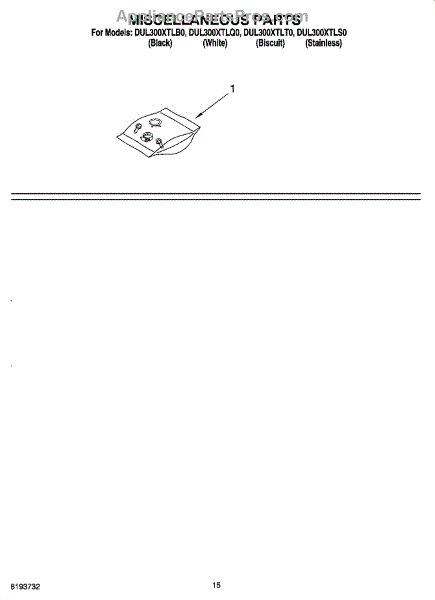 Parts for Whirlpool DUL300XTLS0: 12 - Miscellaneous Parts Optional Parts (Not Included) Parts