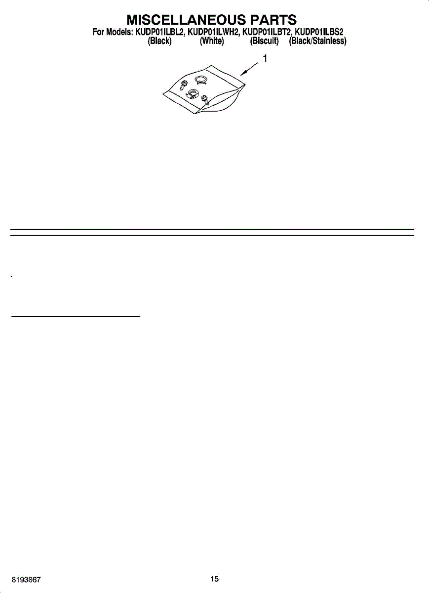 Parts for Kitchenaid KUDP01ILBT2: 12 - Miscellaneous Parts Optional Parts (Not Included) Parts