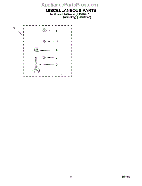 Parts for Whirlpool LSQ9600LW1: 10 - Miscellaneous Parts Optional Parts (Not Included) Parts