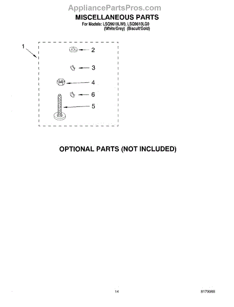 Parts for Whirlpool LSQ9610LW0: 10 - Miscellaneous Parts Optional Parts (Not Included) Parts