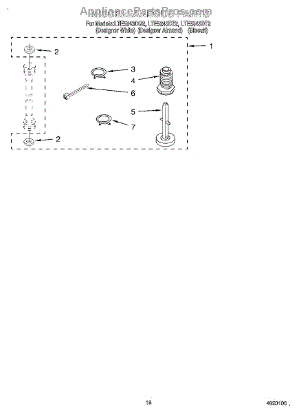 This rear foot assembly supports the back of the appliance and helps keep it level. Replacing a worn or missing foot restores stability, reduces vibration, and helps prevent the unit from rocking or "walking."