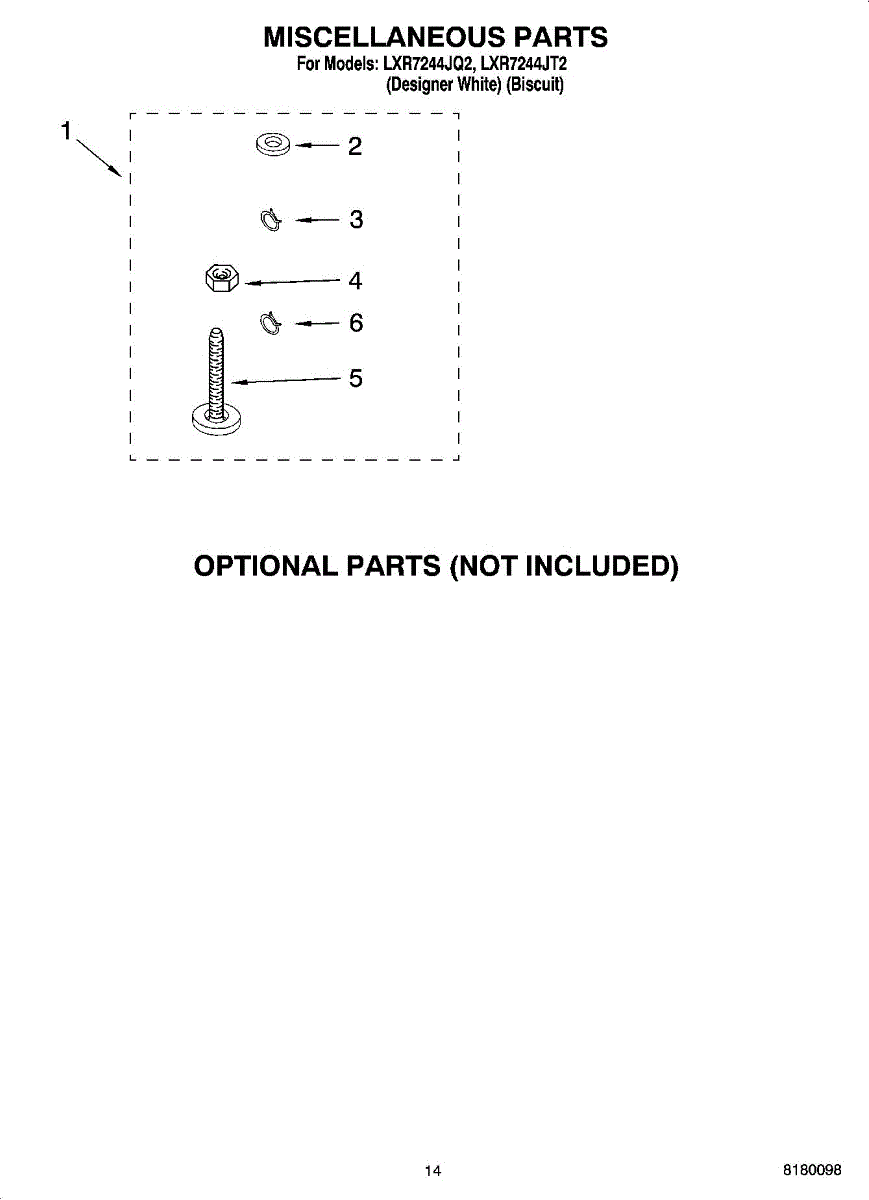Parts for Whirlpool LXR7244JT2: 10 - Miscellaneous Parts - Optional Parts (Not Included) Parts