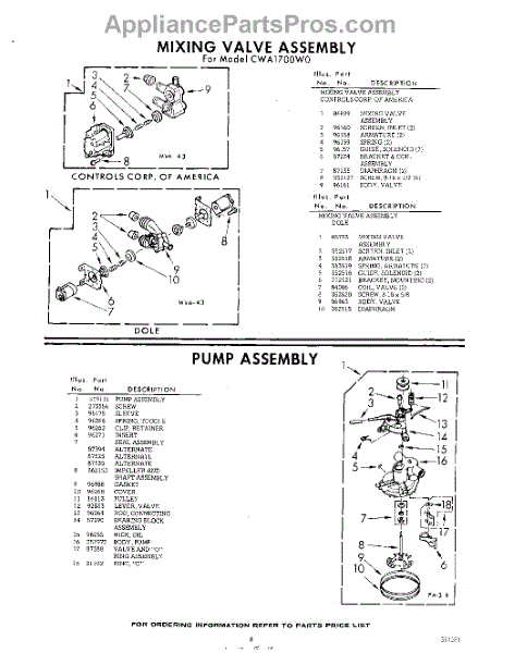 Parts for Whirlpool CWA1700W0: 08 - Mixing Valve , Pump Parts