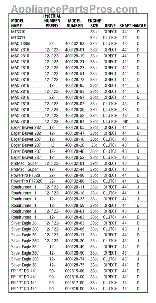 Parts for Mcculloch 41AD310Q077: Model Chart Parts