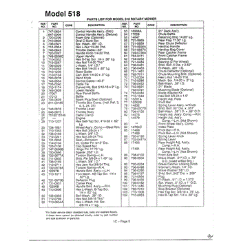 Parts for Mtd 116-508N000: Model 518 Parts List Text Only Parts