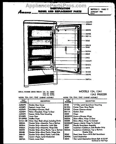 Parts for Amana 12K: Models 12A, 12A1, 12A2 Parts