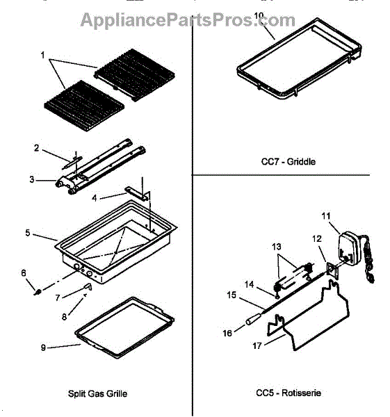 Parts for Amana AGDS901E/P1131817NE: Module - Grille, Griddle Cc7, And Rotisserie Cc5 Parts