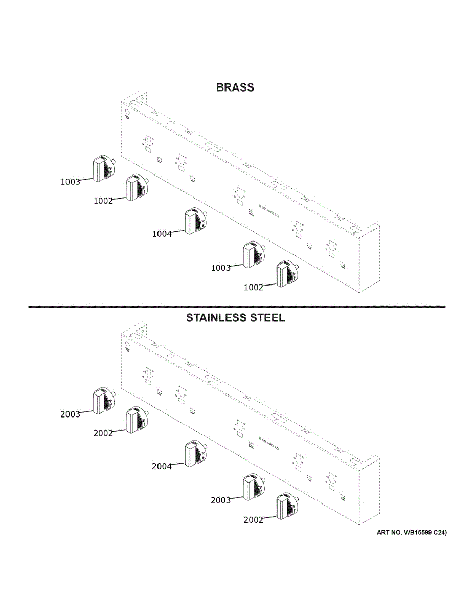 Brass burner knob for gas ranges and cooktops. Replaces worn, cracked, or missing control knobs. Installs on the front control panel to operate burners.