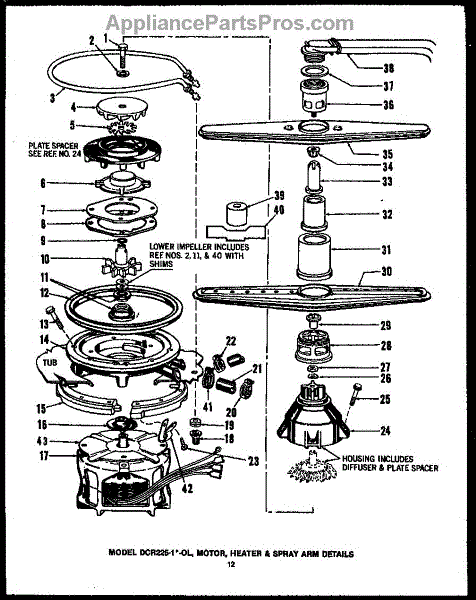 Parts for Caloric DCR-225-1C-OL: Motor (Dcr-225-1A-Ol) (Dcr-225-1L-Ol) (Dcr-225-1H-Ol) (Dcr-225-1C-Ol) (Dcr-225-1W-Ol) Parts