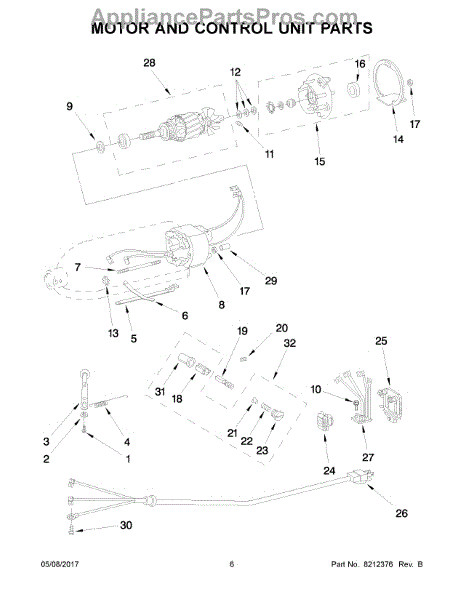 Motor brush holder includes illustration numbers: 28, 32, 33, 34, & 46.