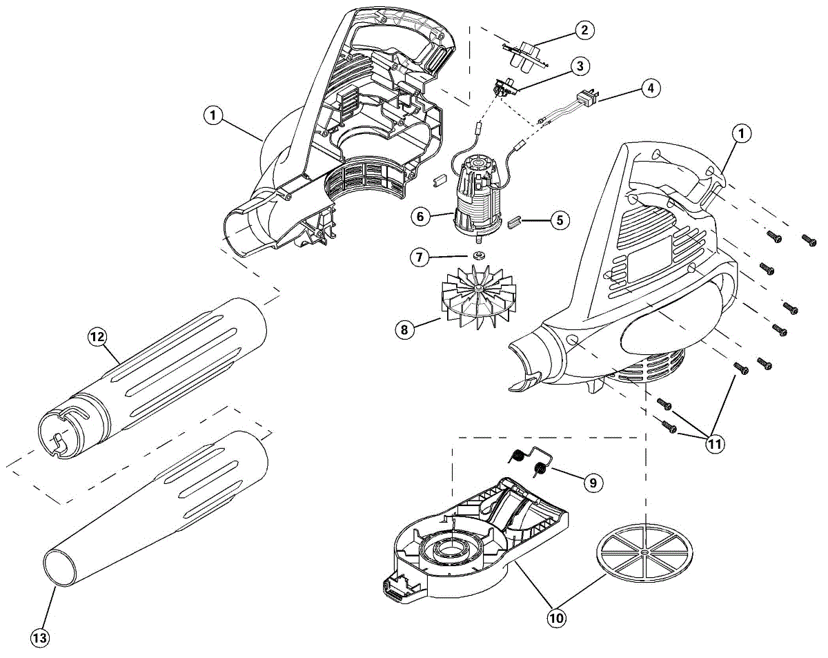 Parts for Ryobi 41AB180C034: Motor And Housing Parts