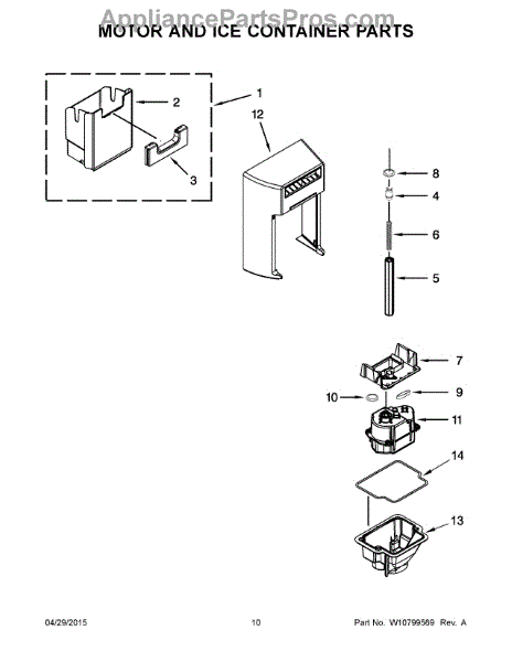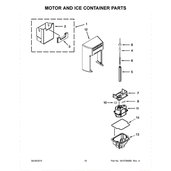 This ice container (ice bin) stores ice made by the icemaker and interfaces with the dispenser drive to deliver cubes or crushed ice. Replacing a cracked or worn bin restores dependable ice storage and dispensing performance.