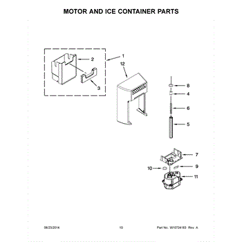 This ice container (ice bin) stores ice made by the icemaker and interfaces with the dispenser drive to deliver cubes or crushed ice. Replacing a cracked or worn bin restores dependable ice storage and dispensing performance.