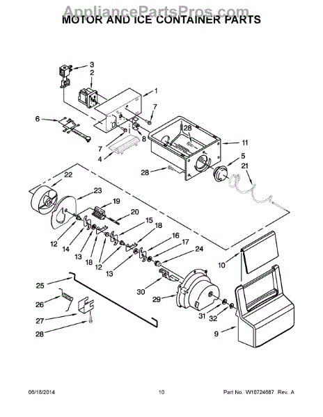 The Whirlpool ice dispenser motor is an OEM replacement part responsible for driving the mechanism that dispenses ice from the ice maker in a refrigerator. This motor is typically located within the ice container assembly, where it powers the auger or paddle responsible for pushing ice cubes through the dispenser chute and into a container or glass. When a user activates the ice dispenser on the refrigerator's exterior, the motor engages, causing the auger or paddle to rotate, delivering ice efficiently. This Whirlpool part can also be used on Maytag, KitchenAid, Jenn-Air, Amana, Magic Chef, Admiral, Norge, Roper, and Kenmore/Sears brand appliances. This part fixes the following symptoms